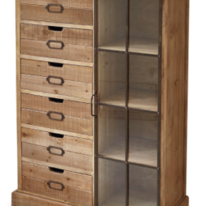 Industrial 6 drawer glass door cabinet Natural Wood – Size 82X40X125 cms – NIPL10455